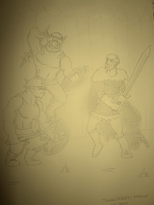 the keep. Tarran Kratys moved out front to protect his wife and son, valiantly